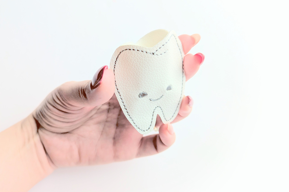 This adorable in the hoop design stitches a pocket in the shape of a cartoon molar tooth. Cute for kids to place a lost tooth so that the tooth fairy can find it. This design is meant to stitch onto non-fraying fabric, like felt, leather, or vinyl. Instructions are included.