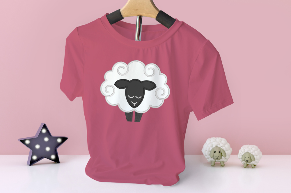 This applique design features an adorable fluffy sheep with curly wool.