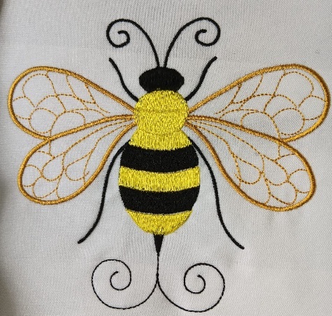 A cheerful bee with bold stripes and airy curled wings. Let her buzz on her own or gather the whole garden crew.