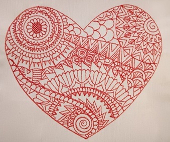 This line embroidery design is a heart filled with intricate mandala-inspired patterns, swirling details and bold geometric shapes that invite you to slow down and enjoy the stitch. Every section brings its own rhythm, creating a striking statement piece for hoop art, bags, cushions or wall dÃcor. Stitch it in a single bold colour for dramatic impact, or let a variegated thread highlight the layers and movement within the design.