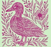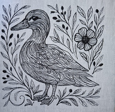This duck line embroidery design features a calm but watchful character who looks like it's been keeping an eye on things for a while now. Standing proudly among foliage and florals, it gives off steady, no-nonsense energy the kind that notices everything but doesn't feel the need to comment. Perfect for hoop art, cushions, tote bags, or any piece that needs quiet confidence with a hint of personality.