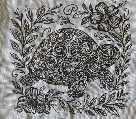 This turtle line embroidery design moves at its own pace and sees absolutely no reason to speed things up. Wrapped in swirling detail and leafy florals, it gives off calm, patient energy with a subtle hint of you will get there eventually. Perfect for hoop art, cushions, tote bags, or anywhere a reminder to slow down and carry on is very much needed.